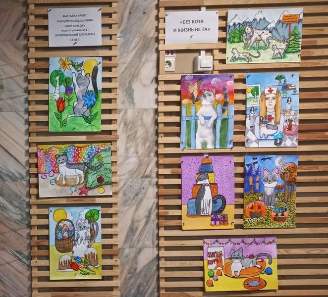 Представляем вашему вниманию первую персональную выставку нашей ученицы Елизаветы Кривощековой, из объединения «Мир красок», под руководством педагога дополнительного образования Цукахиной Ирины Владимировны. Выставка посвящена добрым взаимоотношениям человека и животного. Героем всех работ стала кошка Актимелька.