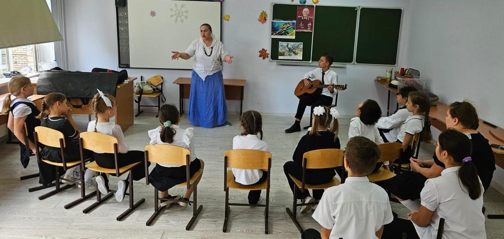 В рамках литературно-музыкальной гостиной, под красивое музыкальное сопровождение ученика Саранчука Андрея, дети погрузились в историю России, узнали о Герое ВОВ Ушакове Валентине Алексеевиче — нашем Краснодарском земляке, лётчике-штурмовике, командире 109 авиационного полка. За время Великой Отечественной войны он совершил много удачных боевых вылетов. Много раз Валентин Алексеевич подвергался воздушному обстрелу, но всегда проявлял смелость и отвагу, без страха вступая в авиационный бой с врагом.
